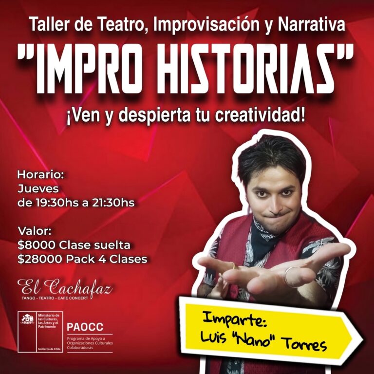 IMPRO-HISTORIAS es un espacio de entrenamiento creativo enfocado en la narración improvisada, dirigido por Luis “Nano” Torres. A través del juego, la escena y la imaginación, este taller invita a explorar nuevas formas de contar historias, desarrollar la comunicación efectiva y construir una relación más libre y consciente con el error.