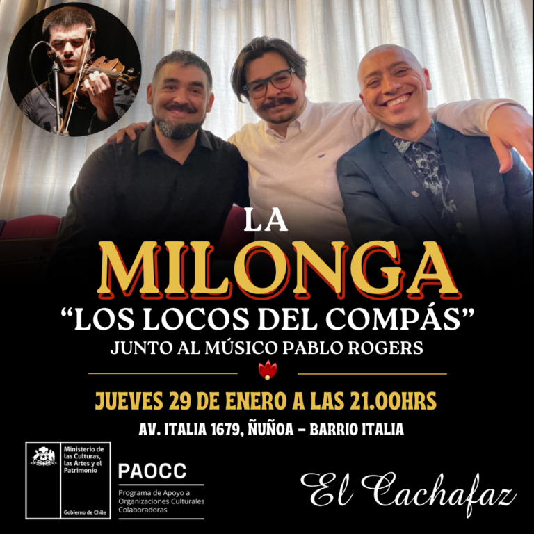 Ven a vivir una hermosa noche junto a Los Locos del Compás junto al músico Pablo Rogers , ven a disfrutar de los mejores tangos y ritmos milongueros.